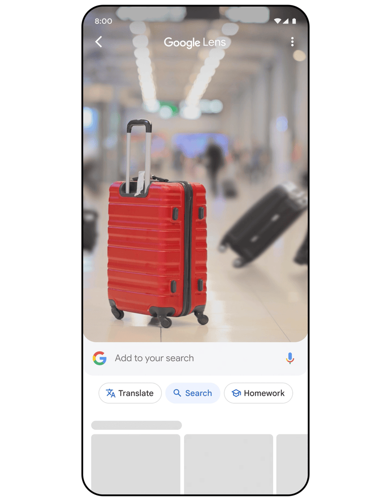 Sur Lens, les annonces publicitaires sont désormais placées en haut des résultats de recherche visuelle. Par exemple, si un utilisateur prend une photo une valise avec l’outil, il verra apparaître en priorité des annonces pertinentes liées à cette image. On augmente considérablement les chances de conversion en associant directement les produits à l’image recherchée.