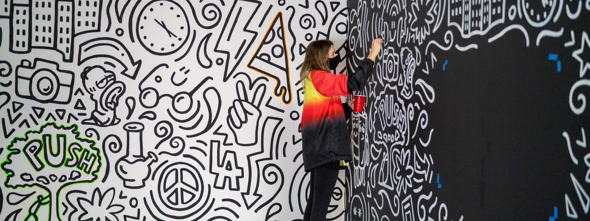 Un retour en enfance ? Le gribouillage est l’une des tendances créatives populaires en 2022. Alors pas de grands coups de crayons multicolores mais simplement des illustrations manuscrites qui viennent orner certains éléments du support de communication et rappeler les marges de nos cahiers durant nos périodes collèges.