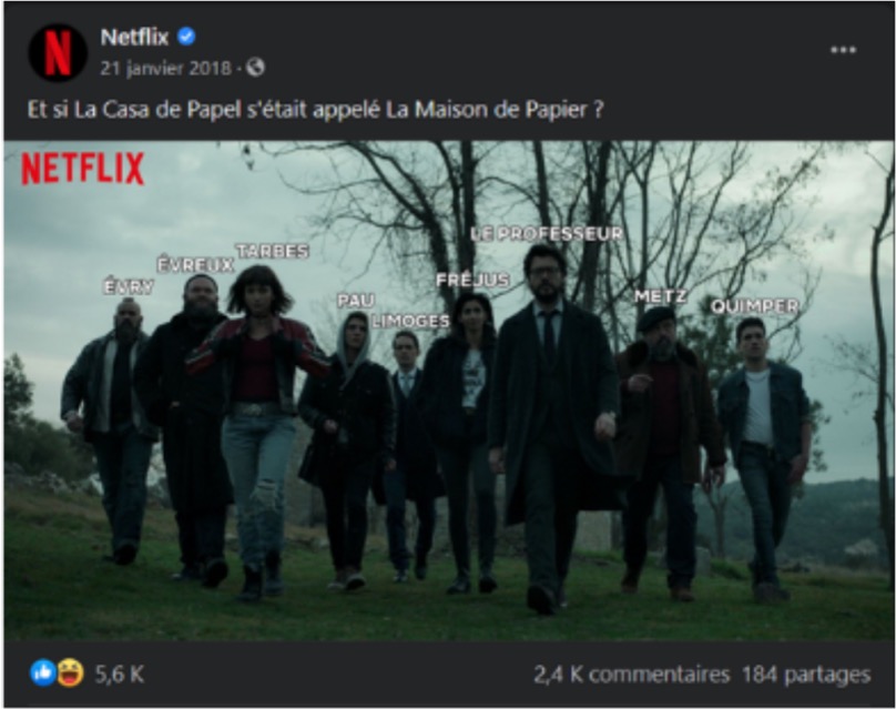 Sources : Facebook Netflix France / Campagne Ads WeSpring