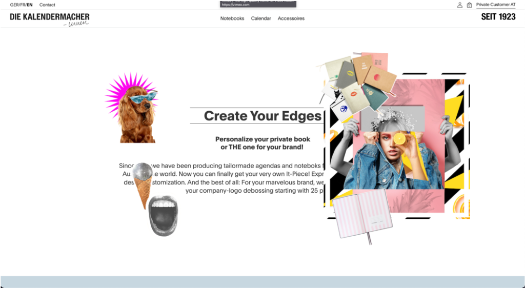 Associée à un style simpliste et épurée, l’asymétrie est une tendance récurrente visant à casser les fondamentaux de la mise en page tout en dynamisant l’expérience client. En ces temps où l’innovation, la recherche et le renouvellement sont primordiaux, cette mise en forme déstructurée permet d’humaniser et de moderniser les supports de communication !