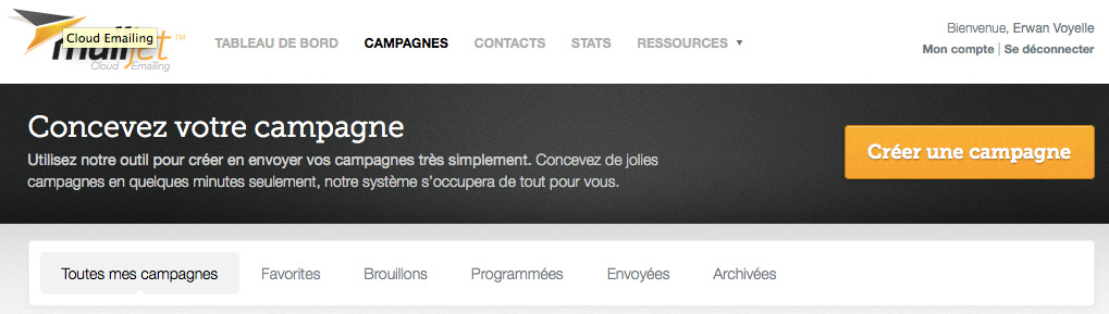 La solution la plus simple, au premier abord, est d’utiliser les outils de Mailjet pour créer une campagne (une lettre).