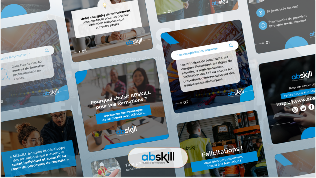 Forts de notre stratégie préalable, nous avons optimisé le choix des plateformes sociales (LinkedIn, Instagram, Facebook) et des messages pour ABSKILL.