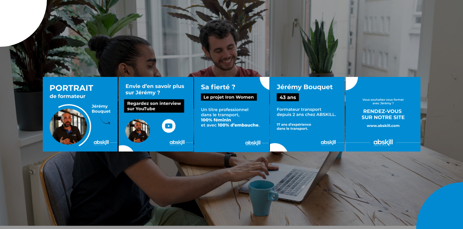 Forts de notre stratégie préalable, nous avons optimisé le choix des plateformes sociales (LinkedIn, Instagram, Facebook) et des messages pour ABSKILL.