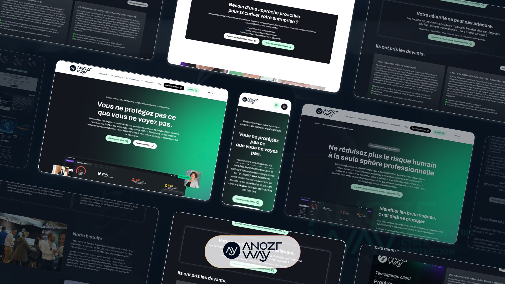 Le design a été pensé pour offrir une navigation intuitive et sobre, répondant aux standards de confiance du secteur, et simplifier les parcours dans le but de guider l’utilisateur en quelques clics vers les pages clés (solutions, cas d’usage, contact). La direction artistique vient renforcer cette expérience en reflétant l’ADN d’ANOZR WAY : une approche claire, directe et rassurante, qui met en lumière la gravité des enjeux tout en instaurant un climat de confiance.