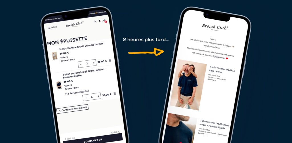 - Compte inactif : une relance douce “Vous nous manquez” accompagnée d’un bon de 10%.