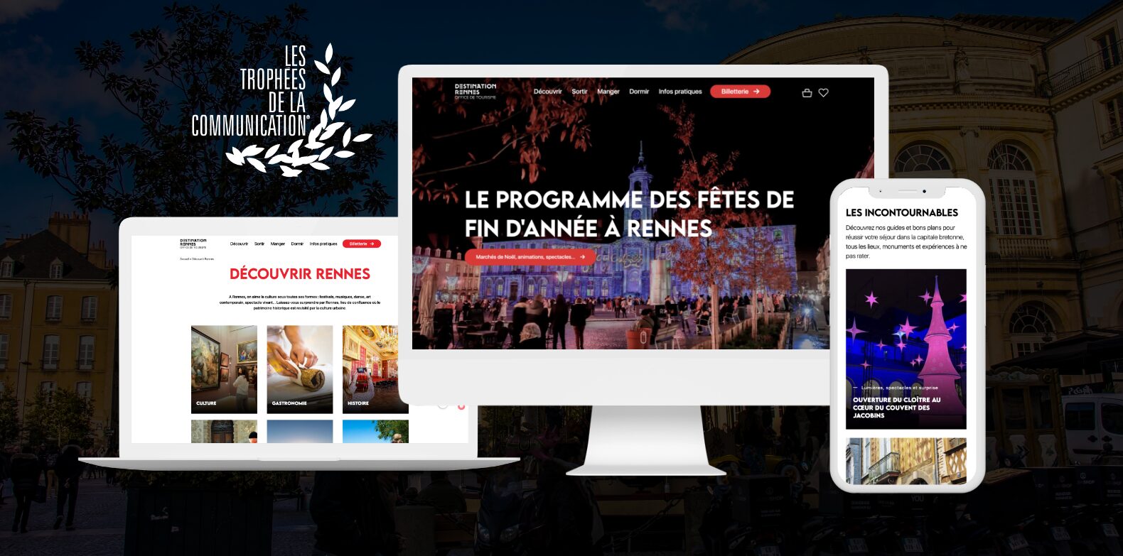 🏆 Nous sommes fiers d’avoir conçu le site internet qui met en lumière notre belle ville rennaise et qui a remporté la 2ᵉ place dans la catégorie « Meilleur site internet de tourisme » aux Trophées de la Communication 2024.