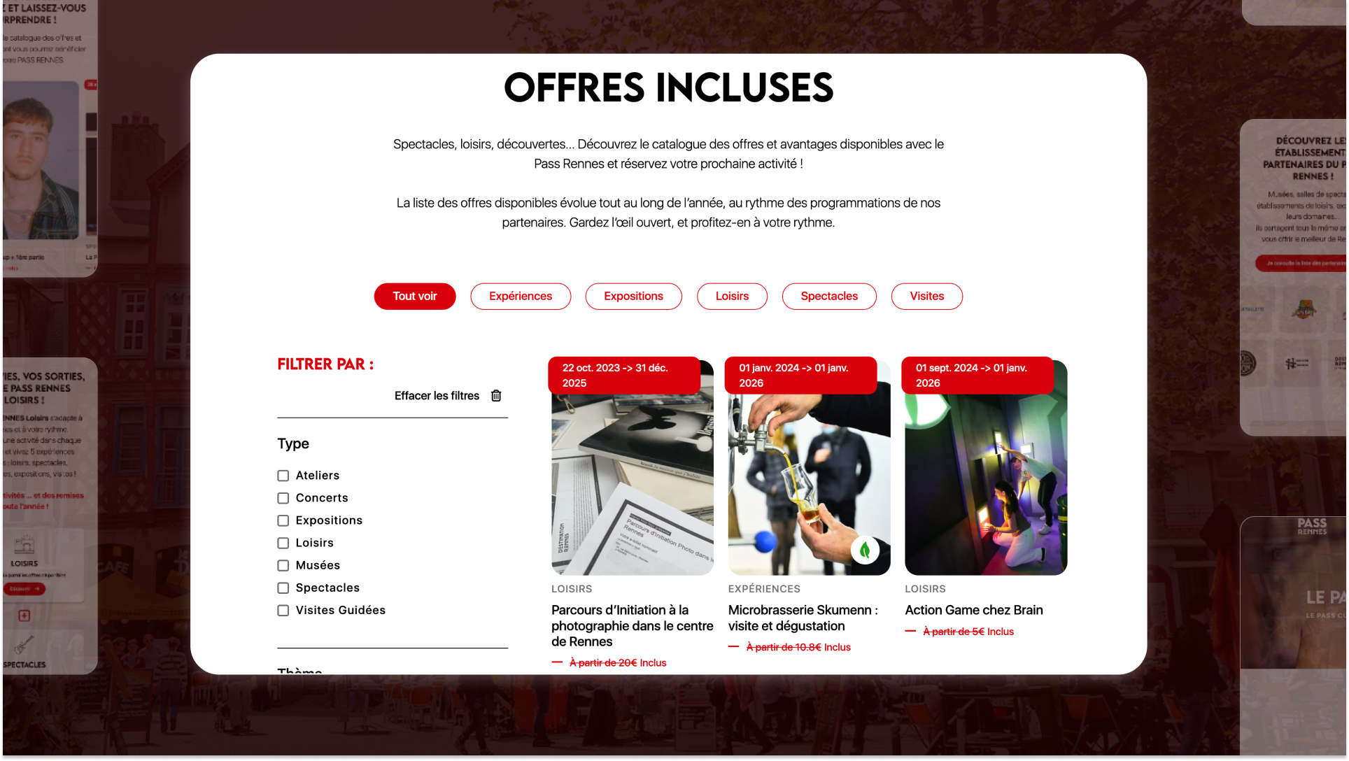Avant toute chose, il était essentiel de bien comprendre l’ambition portée par le Pass Rennes : valoriser une offre culturelle locale, pensée pour les habitants, et non une audience touristique. Cette orientation a guidé tous nos choix, tant stratégiques que fonctionnels.