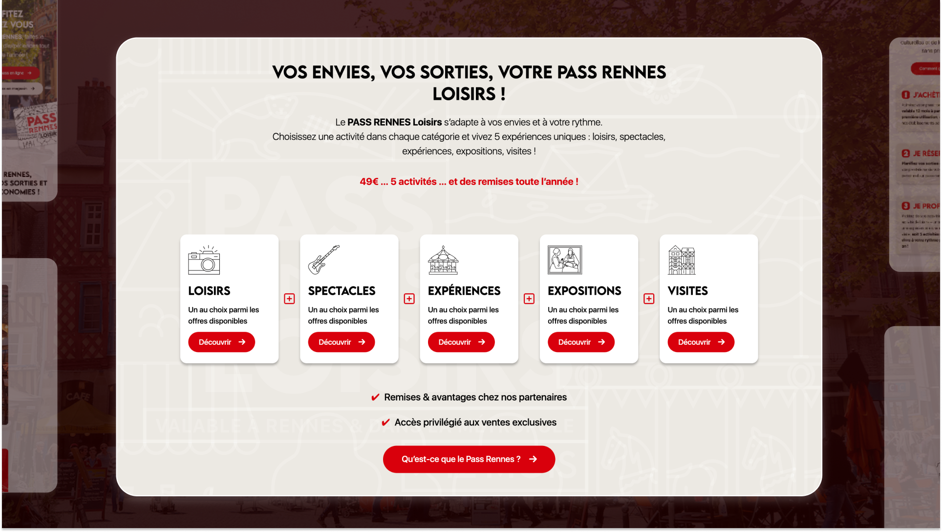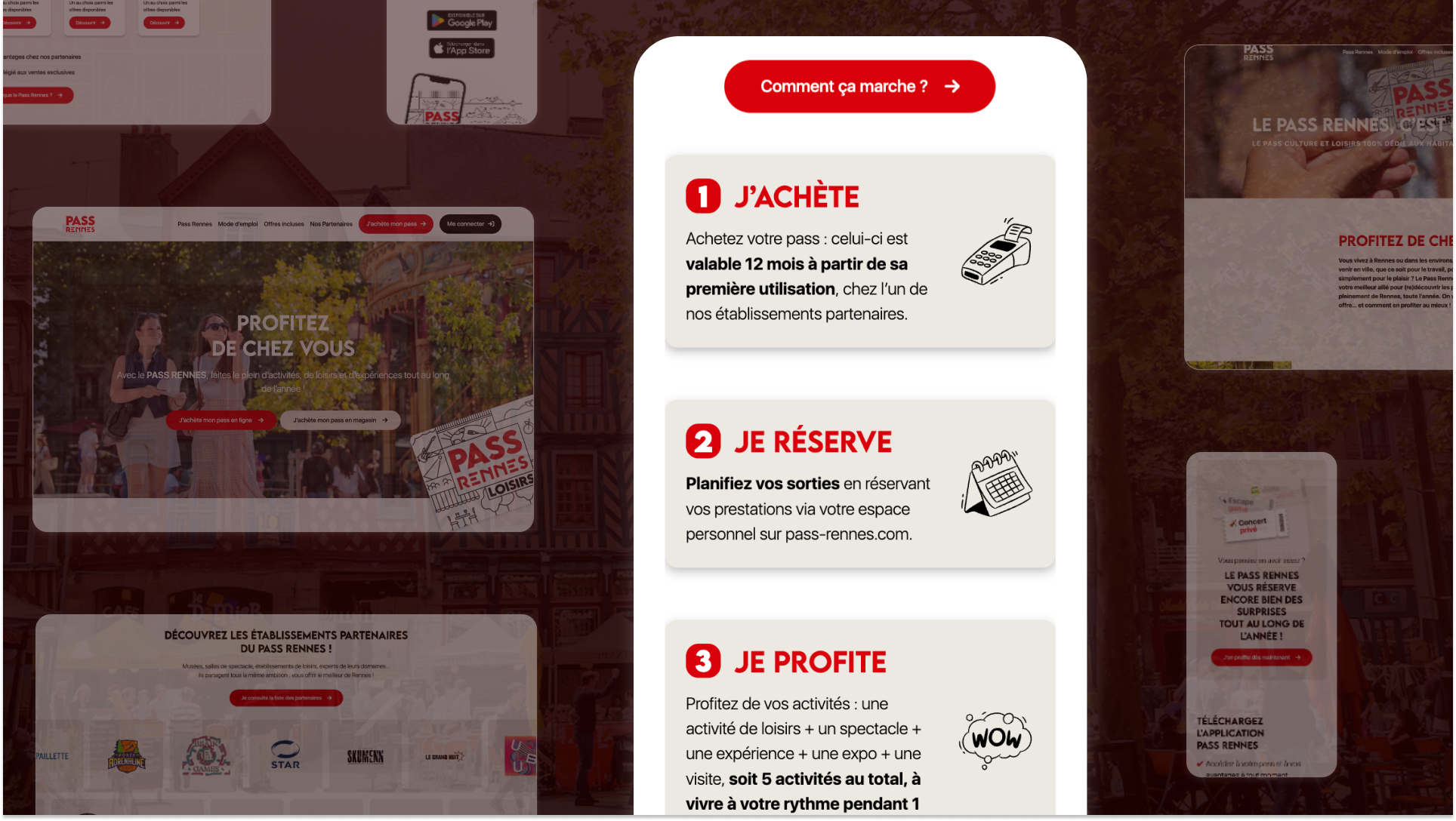 - Donner envie d’acheter le Pass Rennes, en mettant en avant une proposition de valeur simple et attractive, permettant aux utilisateurs de réaliser des économies sur des sorties variées.