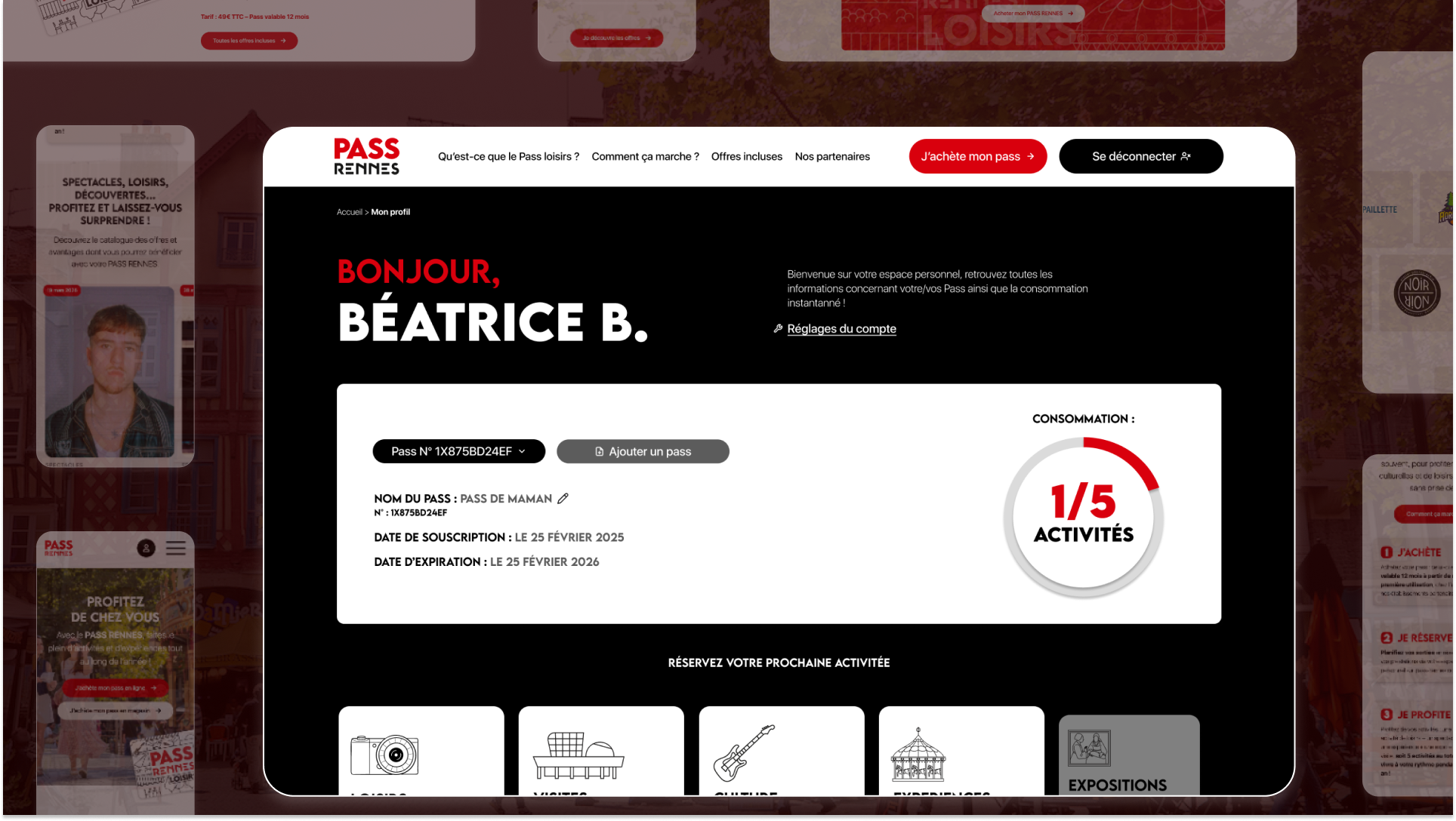 Nous avons mis en place les interconnexions avec l’ERP Destination Rennes ainsi qu’avec la plateforme de gestion du Pass, pour garantir une expérience continue, de la navigation à la gestion post-achat.