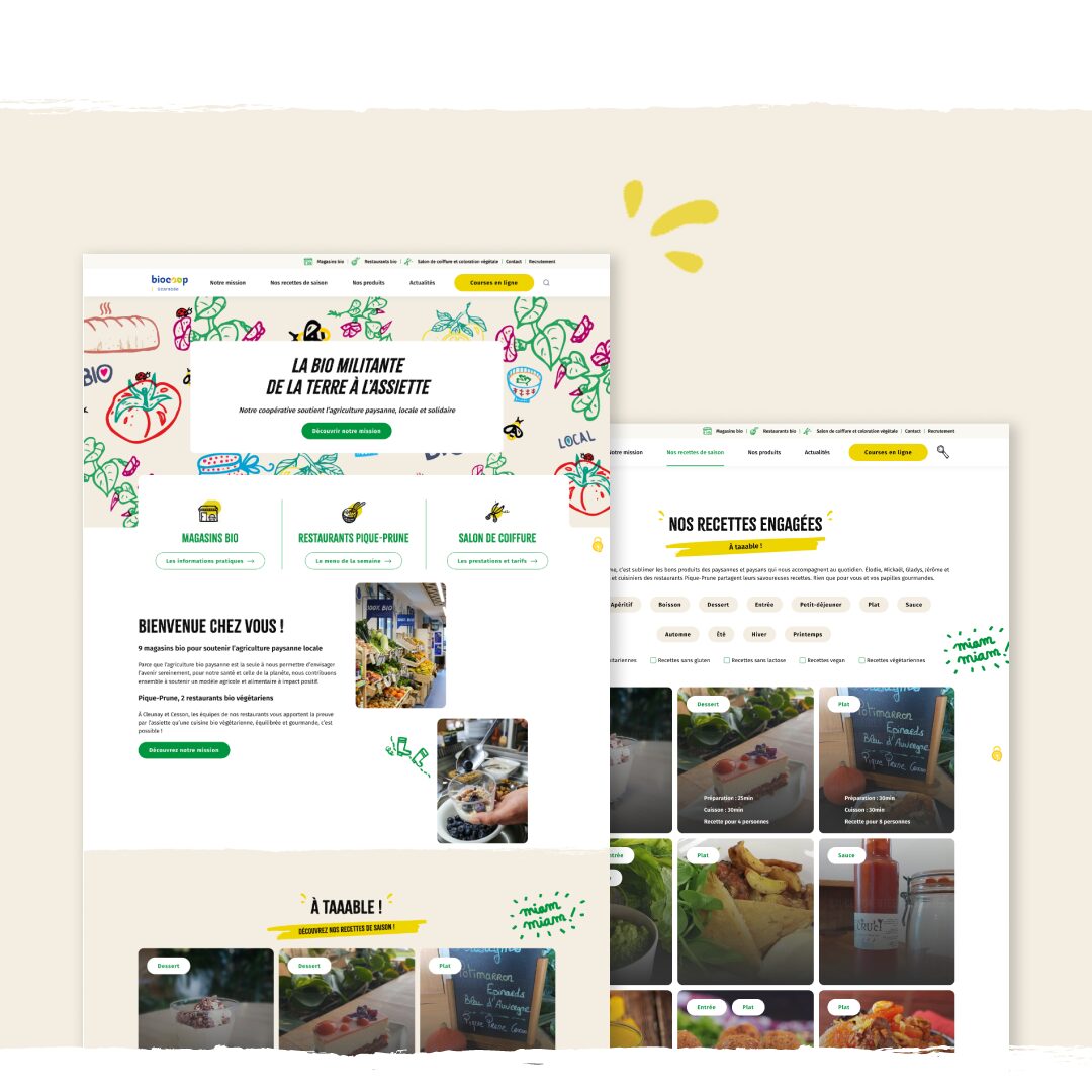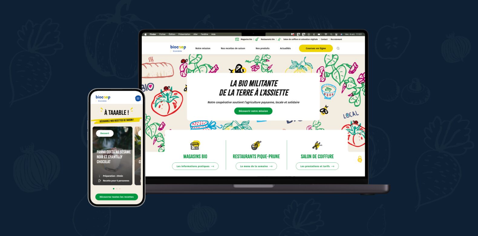 Pour retranscrire pleinement l’âme locale et artisanale de Scarabée Biocoop, nous avons conçu une interface visuelle unique, inspirée des valeurs écologiques et du fait-main. L’ergonomie du site a été pensée pour créer des passerelles naturelles entre les magasins et les restaurants offrant une navigation fluide et engageante.