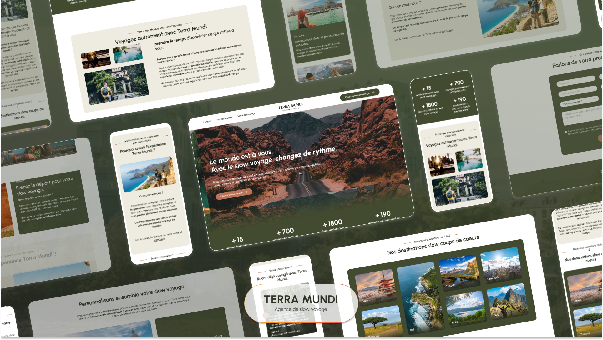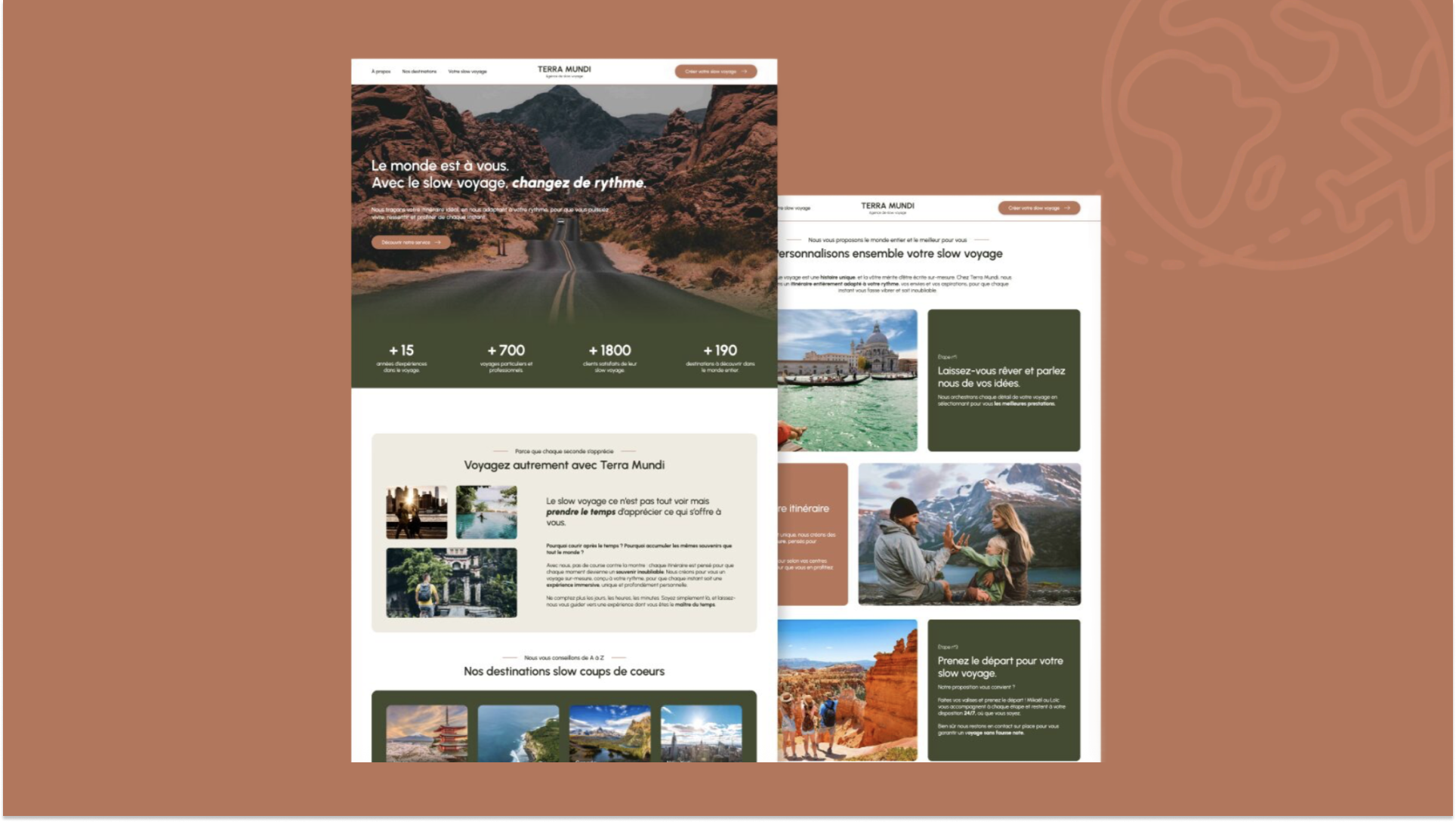 • Affirmer la singularité de Terra Mundi en incarnant sa philosophie du “slow voyage” grâce à un univers graphique immersif, une ligne éditoriale cohérente et une posture engagée qui tranche avec les codes des agences classiques et des tour-opérateurs.